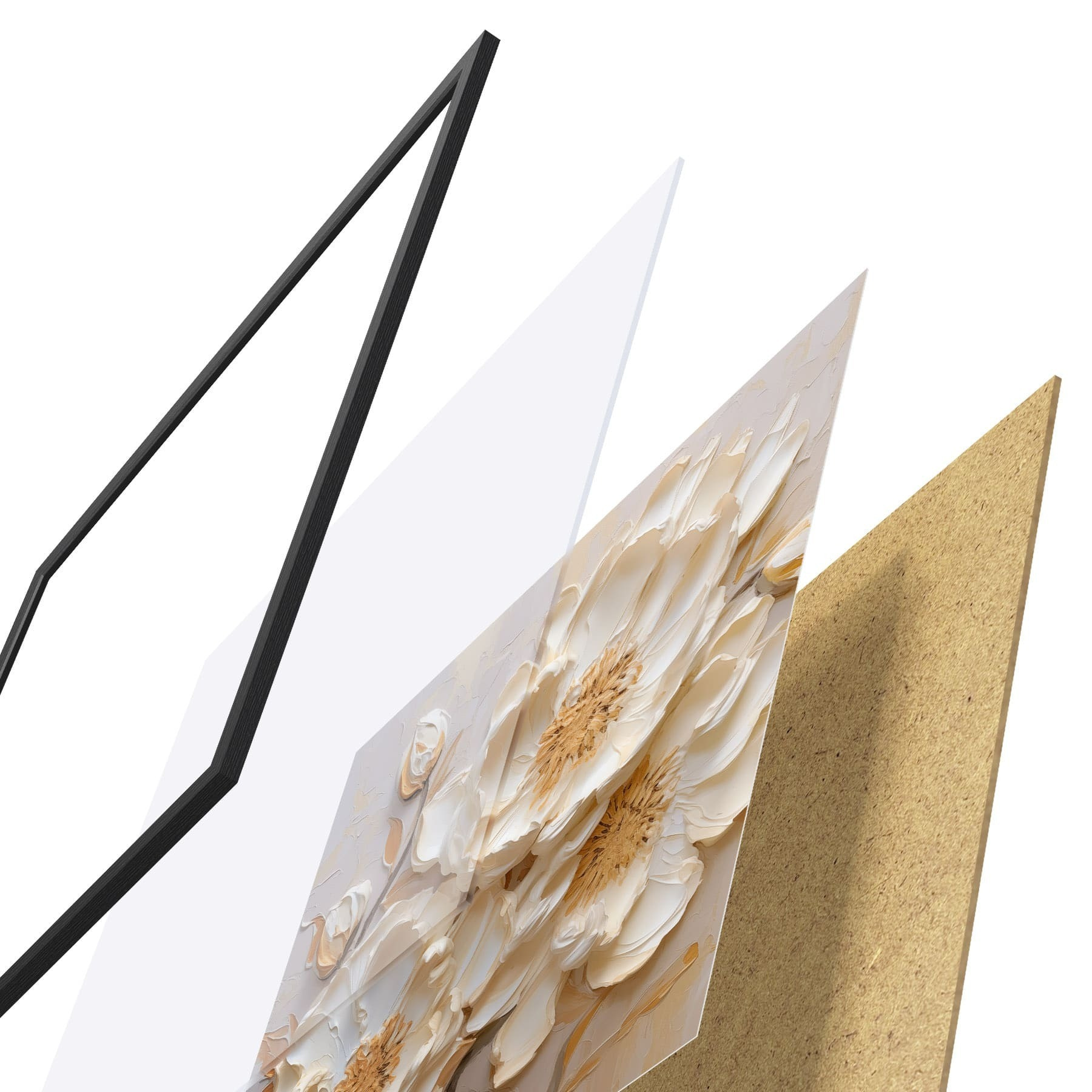 L’affiche encadrée est composée d’un cadre, d’un plexiglas, d’une image imprimée et d’un support en aggloméré. Elle est prête à être accrochée au mur grâce aux fixations situées à l’arrière.
