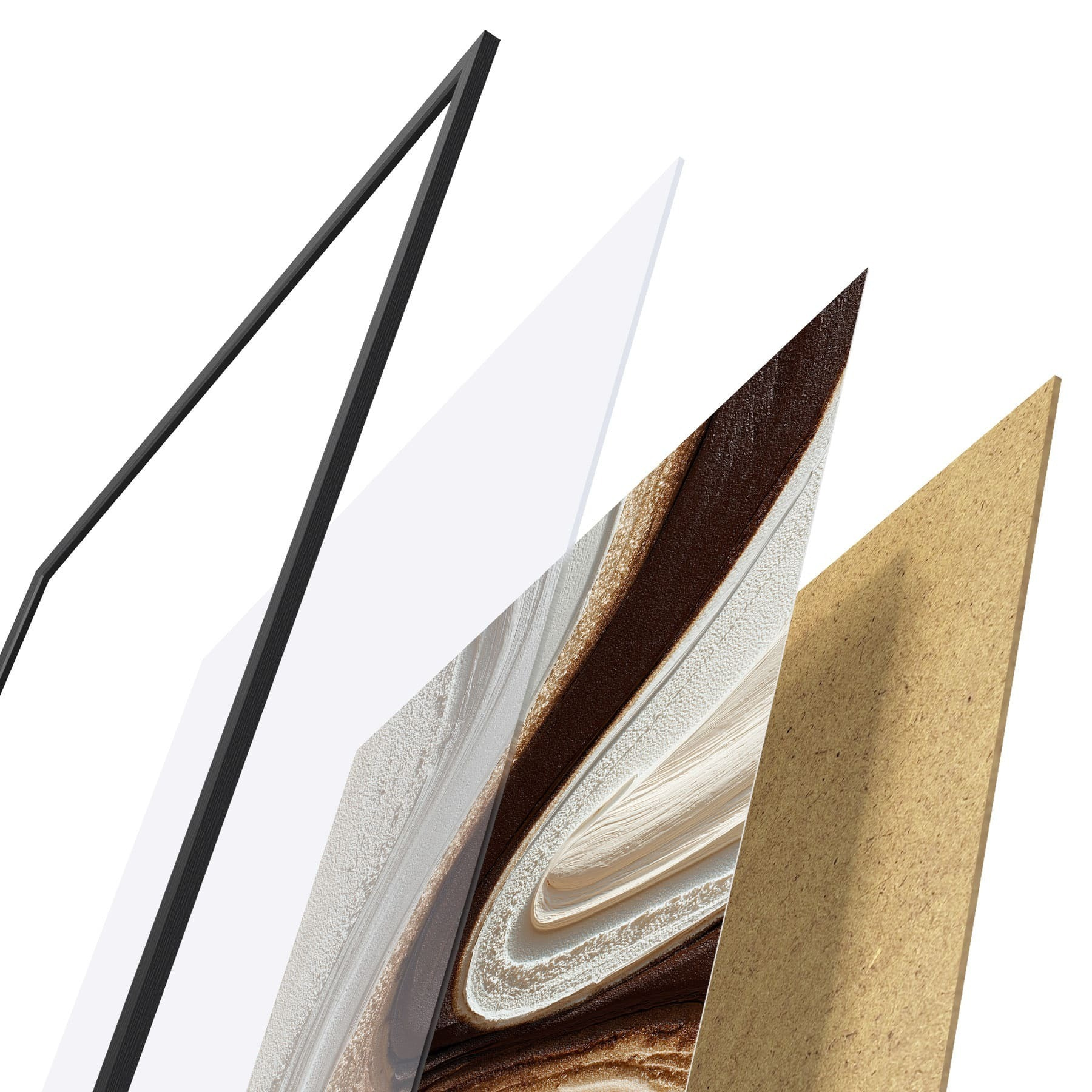 L’affiche encadrée est composée d’un cadre, d’un plexiglas, d’une image imprimée et d’un support en aggloméré. Elle est prête à être accrochée au mur grâce aux fixations situées à l’arrière.