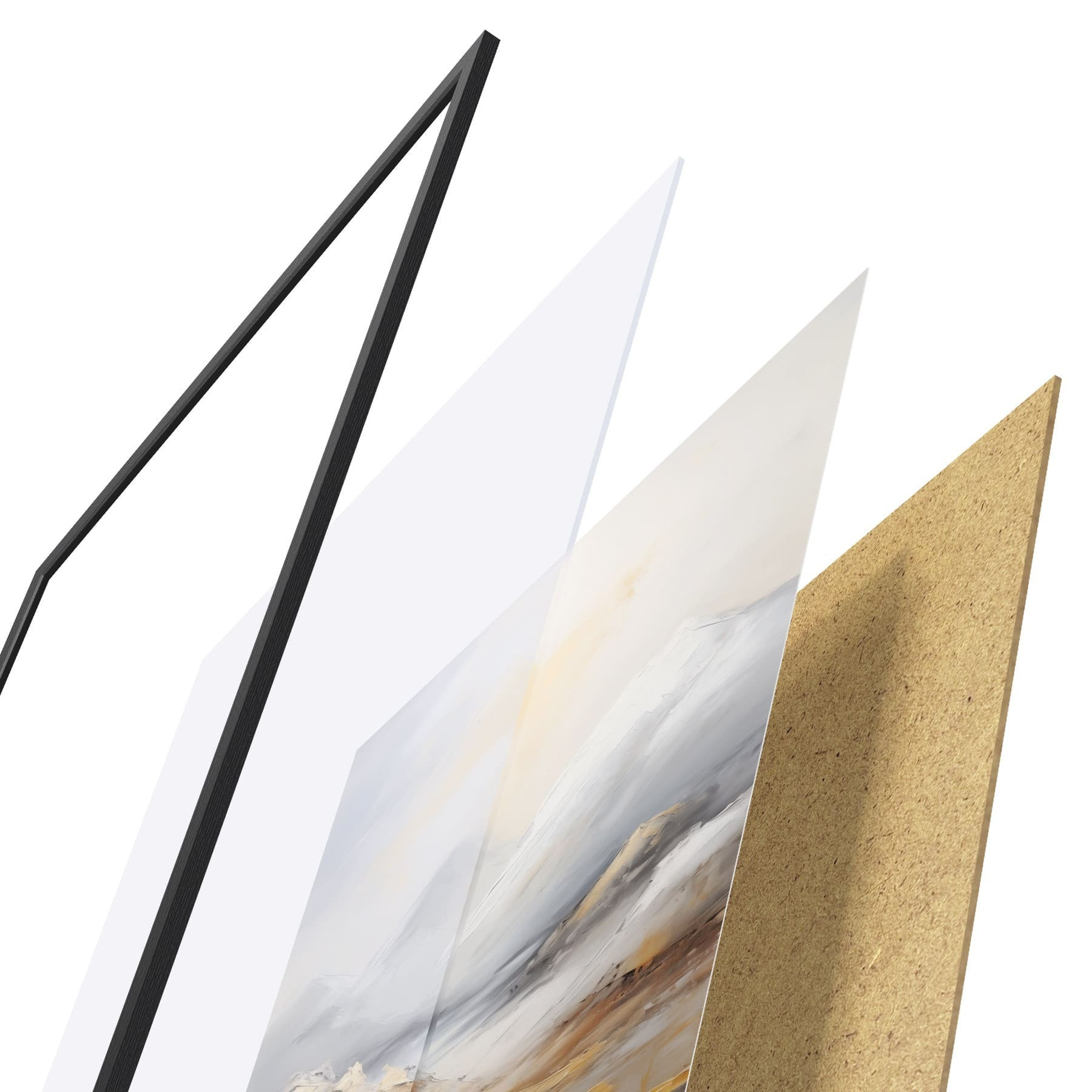 L’affiche encadrée est composée d’un cadre, d’un plexiglas, d’une image imprimée et d’un support en aggloméré. Elle est prête à être accrochée au mur grâce aux fixations situées à l’arrière.