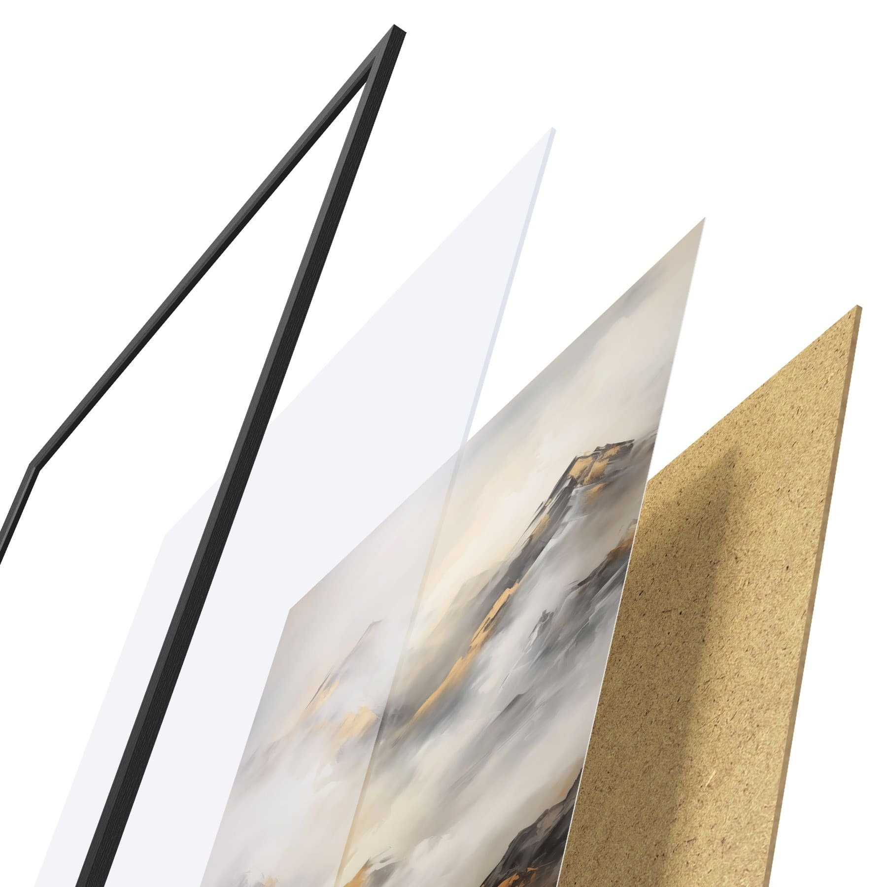 L’affiche encadrée est composée d’un cadre, d’un plexiglas, d’une image imprimée et d’un support en aggloméré. Elle est prête à être accrochée au mur grâce aux fixations situées à l’arrière.