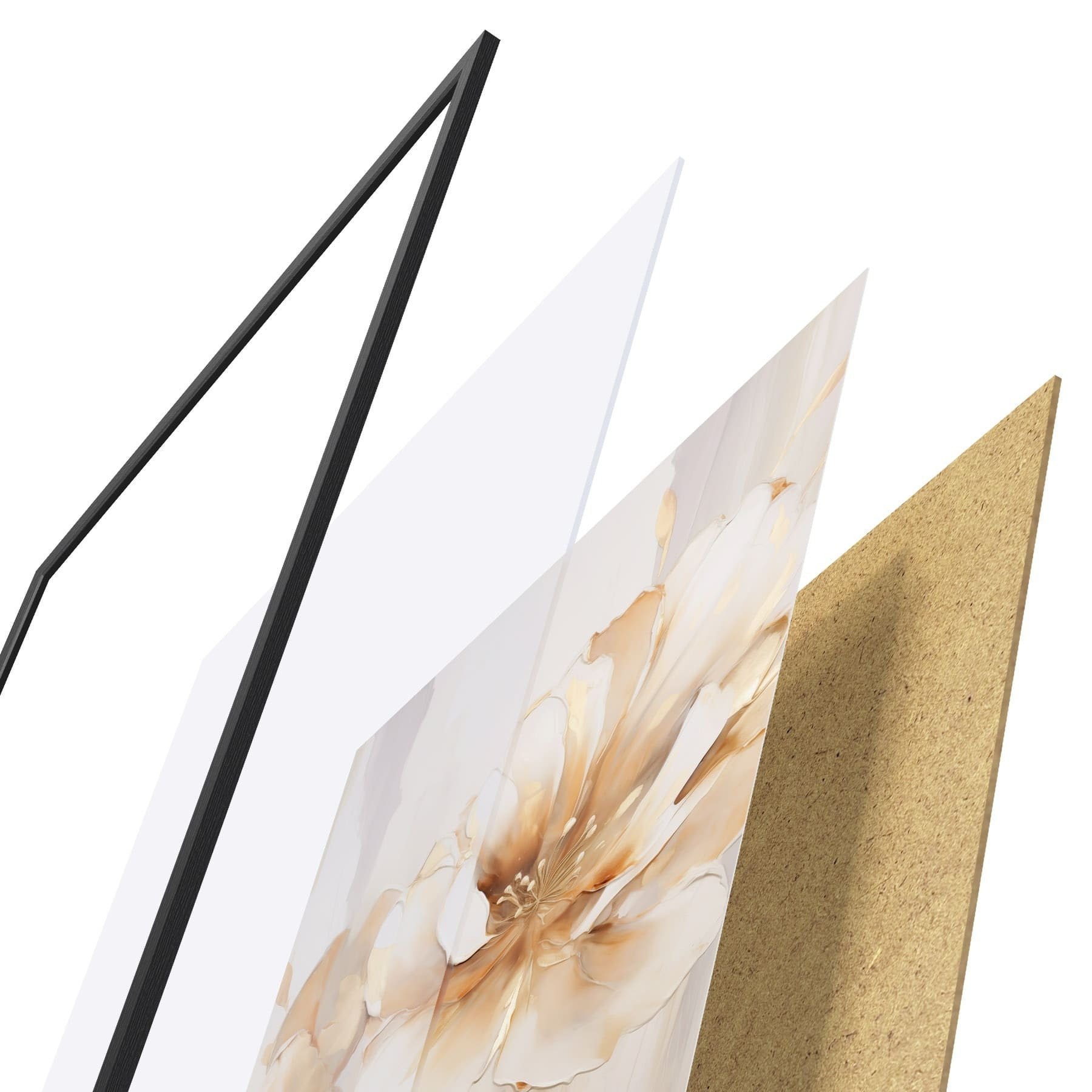 L’affiche encadrée est composée d’un cadre, d’un plexiglas, d’une image imprimée et d’un support en aggloméré. Elle est prête à être accrochée au mur grâce aux fixations situées à l’arrière.