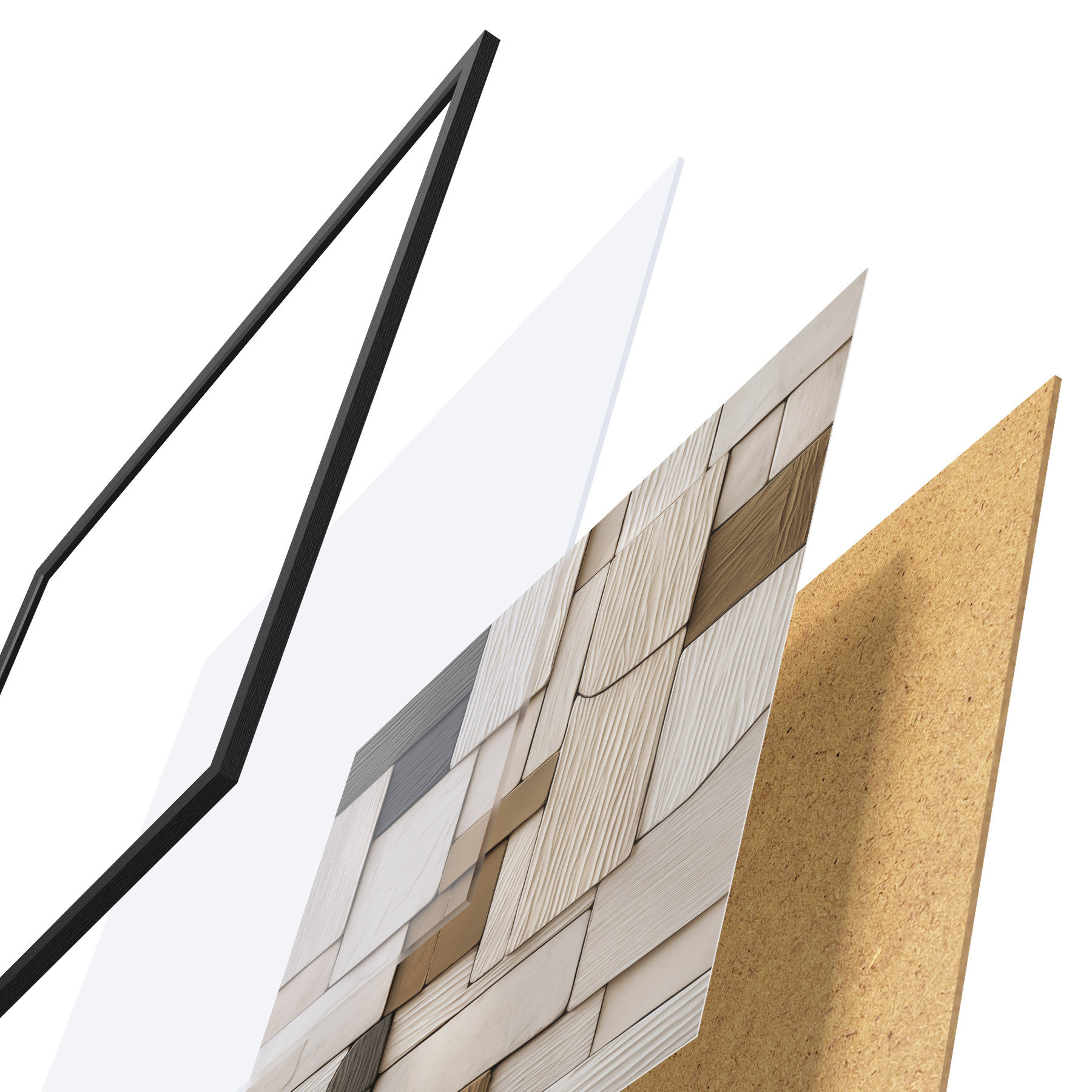 L’affiche encadrée est composée d’un cadre, d’un plexiglas, d’une image imprimée et d’un support en aggloméré. Elle est prête à être accrochée au mur grâce aux fixations situées à l’arrière.