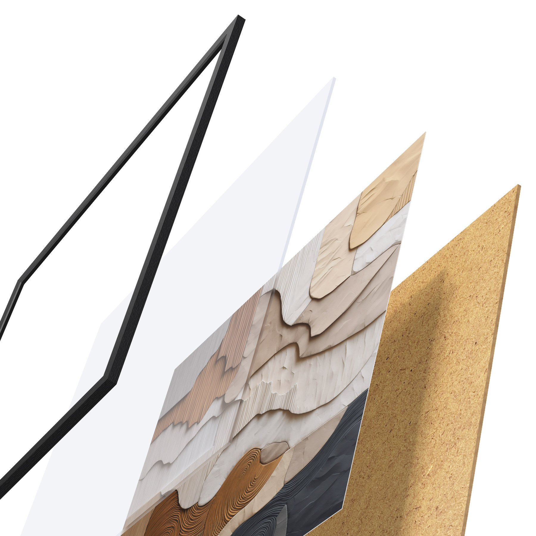 L’affiche encadrée est composée d’un cadre, d’un plexiglas, d’une image imprimée et d’un support en aggloméré. Elle est prête à être accrochée au mur grâce aux fixations situées à l’arrière.