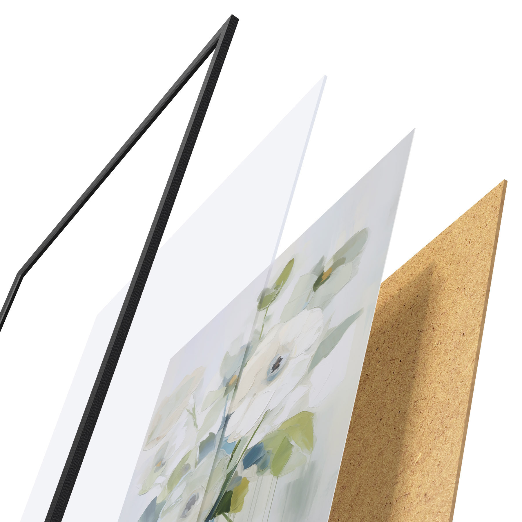 L’affiche encadrée est composée d’un cadre, d’un plexiglas, d’une image imprimée et d’un support en aggloméré. Elle est prête à être accrochée au mur grâce aux fixations situées à l’arrière.