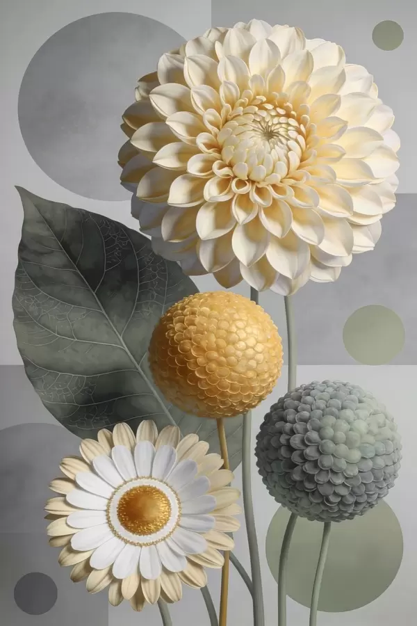 Poster Grandes fleurs abstraites avec des éléments géométriques Nr f48178