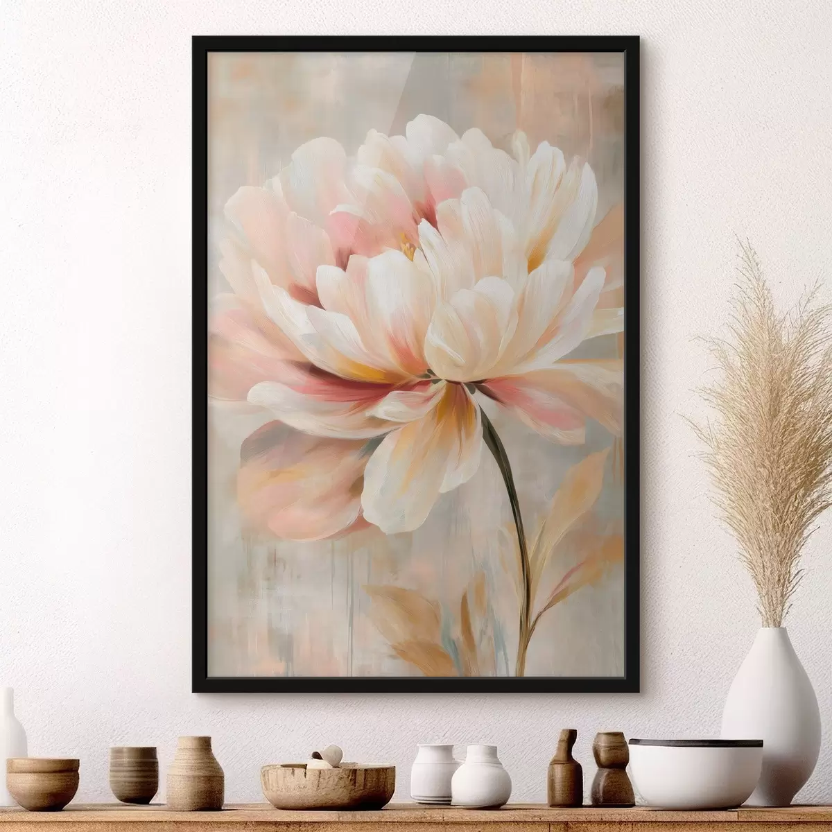 Poster Une pivoine délicate aux tons pastel, dans un style peinture à l'huile Nr f48183
