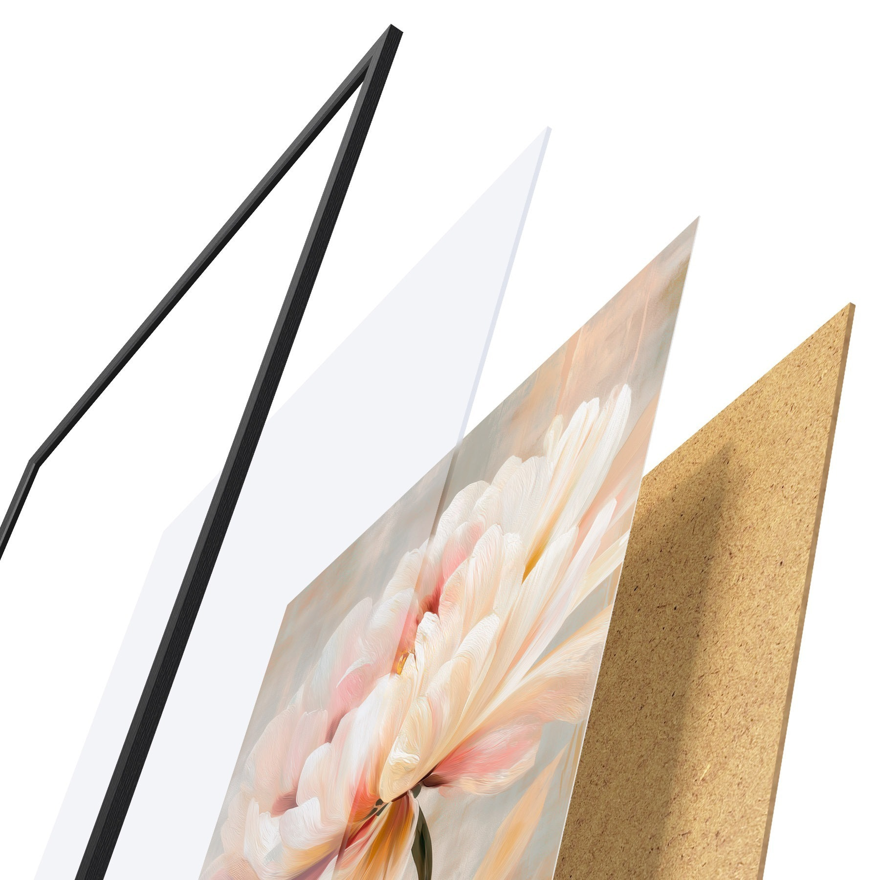L’affiche encadrée est composée d’un cadre, d’un plexiglas, d’une image imprimée et d’un support en aggloméré. Elle est prête à être accrochée au mur grâce aux fixations situées à l’arrière.
