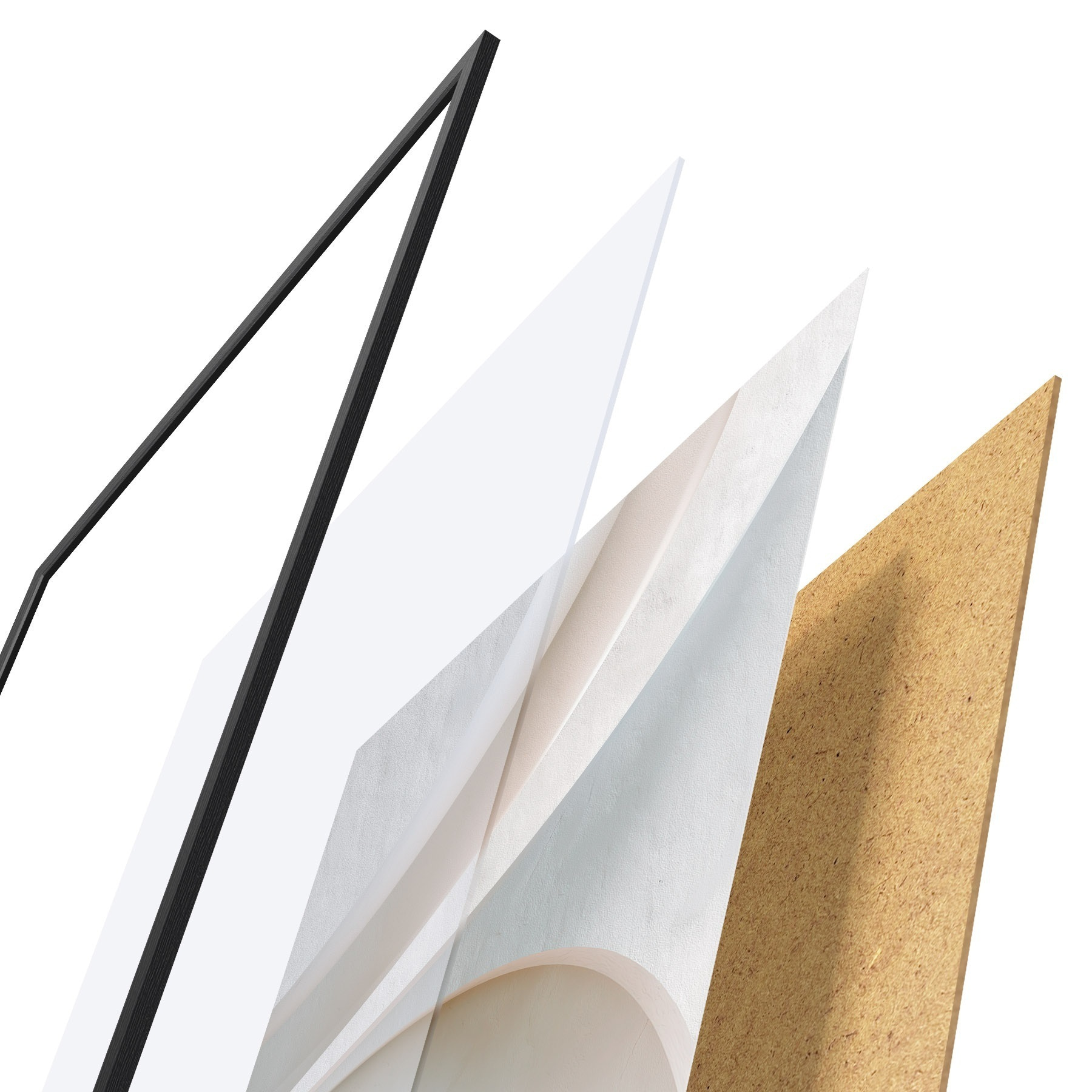 L’affiche encadrée est composée d’un cadre, d’un plexiglas, d’une image imprimée et d’un support en aggloméré. Elle est prête à être accrochée au mur grâce aux fixations situées à l’arrière.