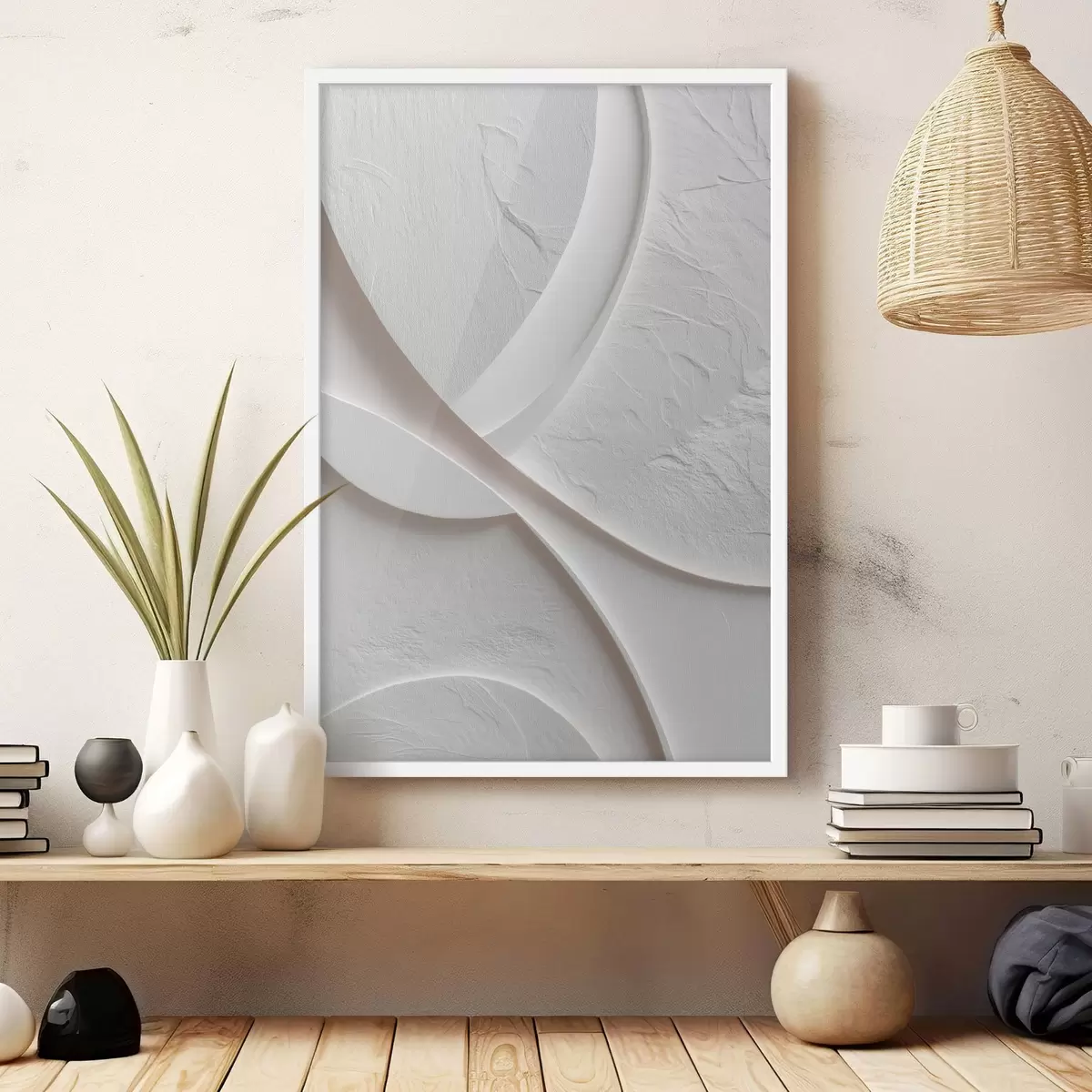 Poster Panneau décoratif aux lignes fluides et à la texture pierre sur un fond clair f48192
