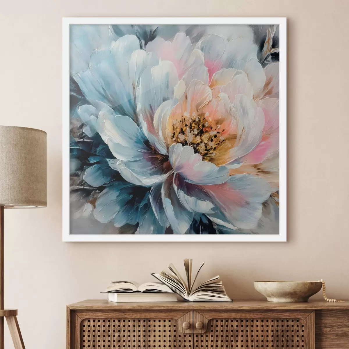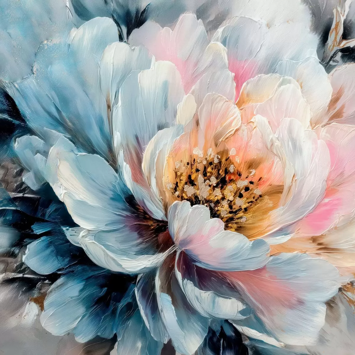 Poster Grande pivoine représentée par des coups de pinceau texturés et expressifs, dans un style pictural contemporain Nr f48197