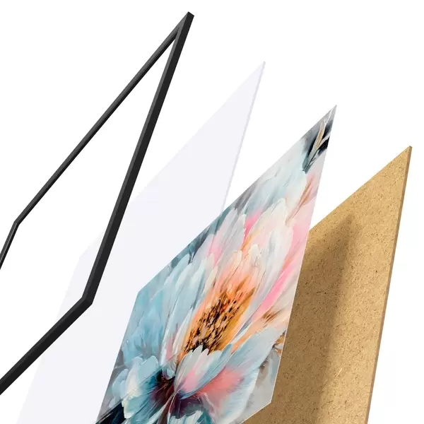 L’affiche encadrée est composée d’un cadre, d’un plexiglas, d’une image imprimée et d’un support en aggloméré. Elle est prête à être accrochée au mur grâce aux fixations situées à l’arrière.