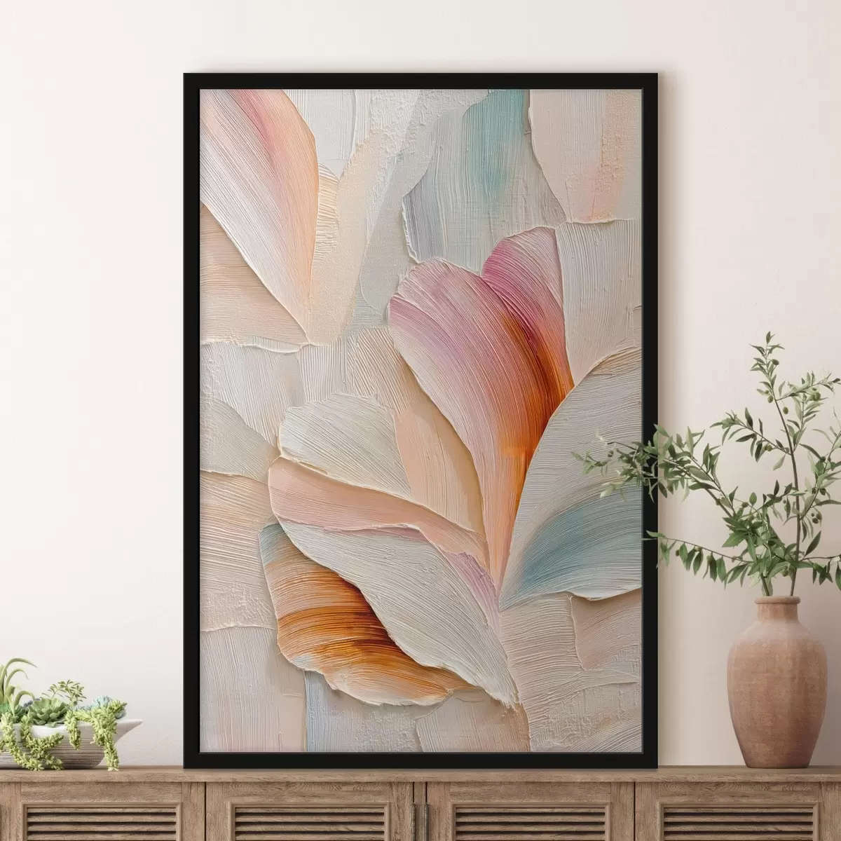 Poster Illustration artistique avec des pétales en relief, dans un style pictural contemporain Nr f48201
