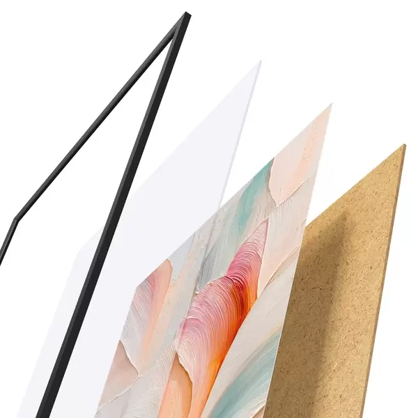 L’affiche encadrée est composée d’un cadre, d’un plexiglas, d’une image imprimée et d’un support en aggloméré. Elle est prête à être accrochée au mur grâce aux fixations situées à l’arrière.