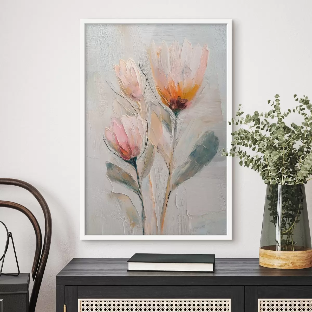 Poster Bouquet de protéas avec un effet de coups de pinceau épais f48206