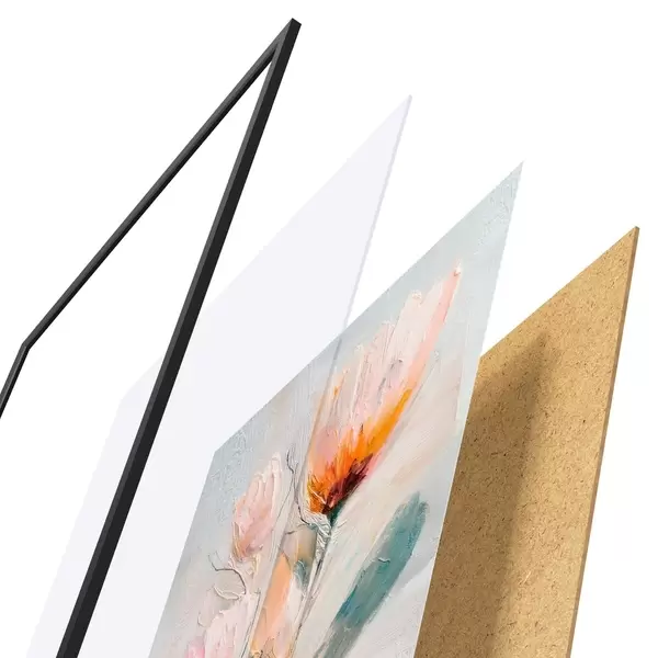 L’affiche encadrée est composée d’un cadre, d’un plexiglas, d’une image imprimée et d’un support en aggloméré. Elle est prête à être accrochée au mur grâce aux fixations situées à l’arrière.