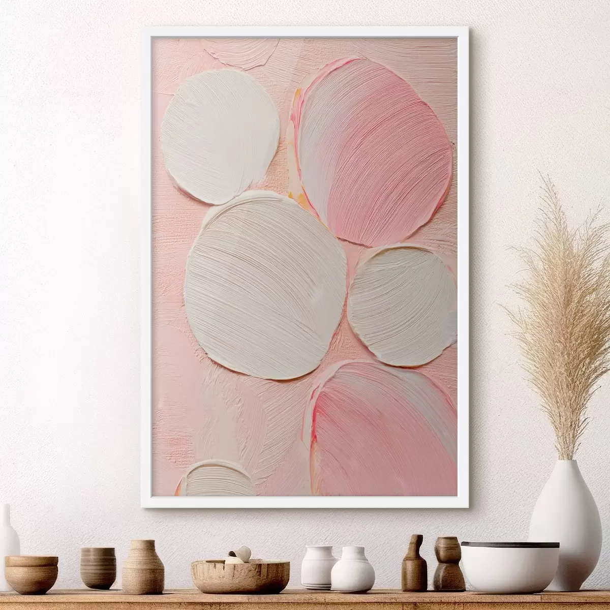 Poster Panneau décoratif orné de coups de pinceau circulaires en relief dans une palette de couleurs pastel f48208