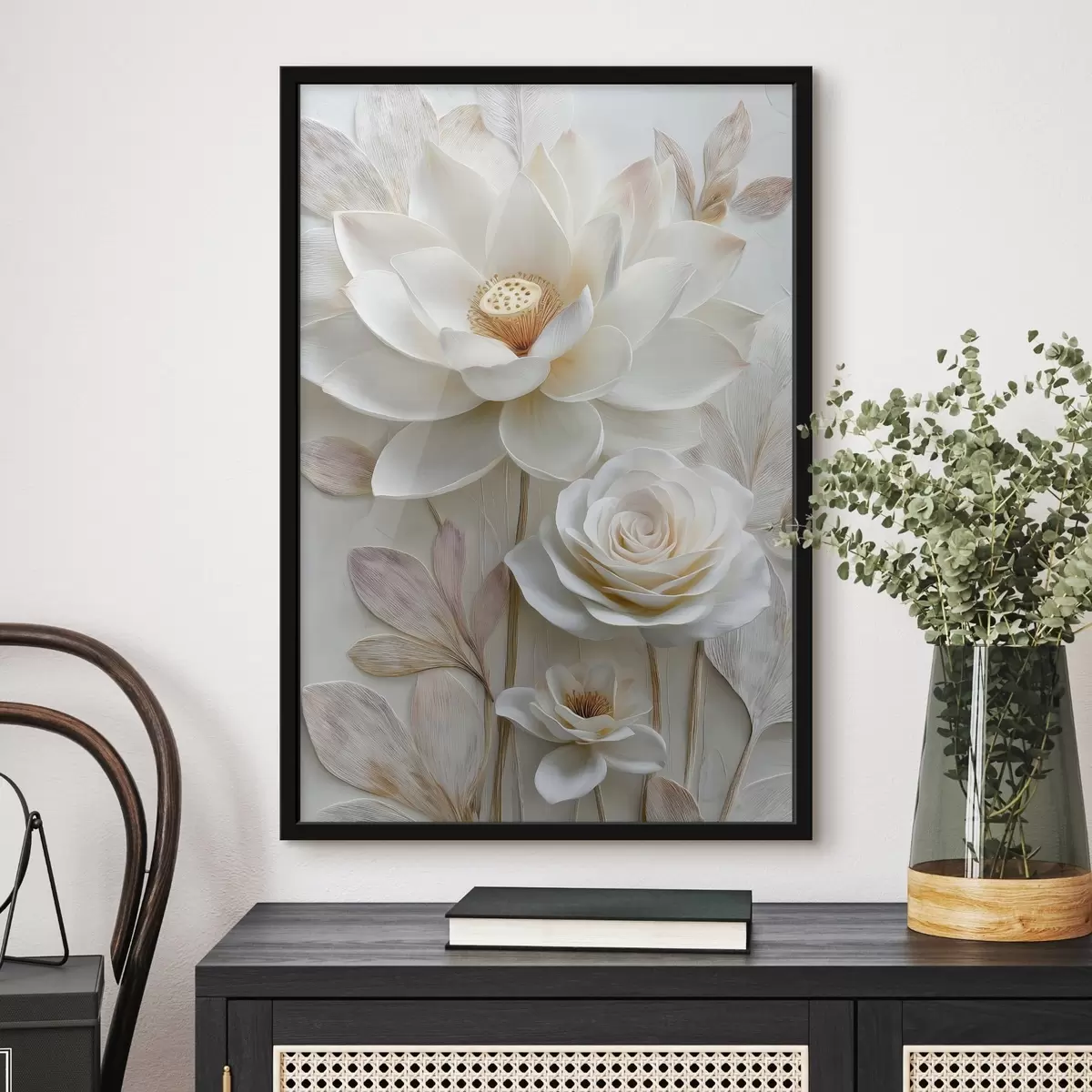 Poster Des fleurs de lotus et de rose dans des tons crème clair, dans un style de peinture à l'huile Nr f48214