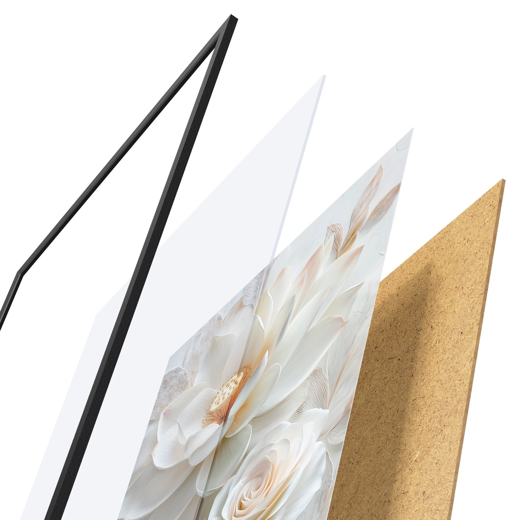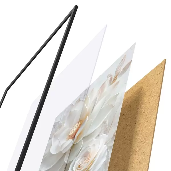 L’affiche encadrée est composée d’un cadre, d’un plexiglas, d’une image imprimée et d’un support en aggloméré. Elle est prête à être accrochée au mur grâce aux fixations situées à l’arrière.