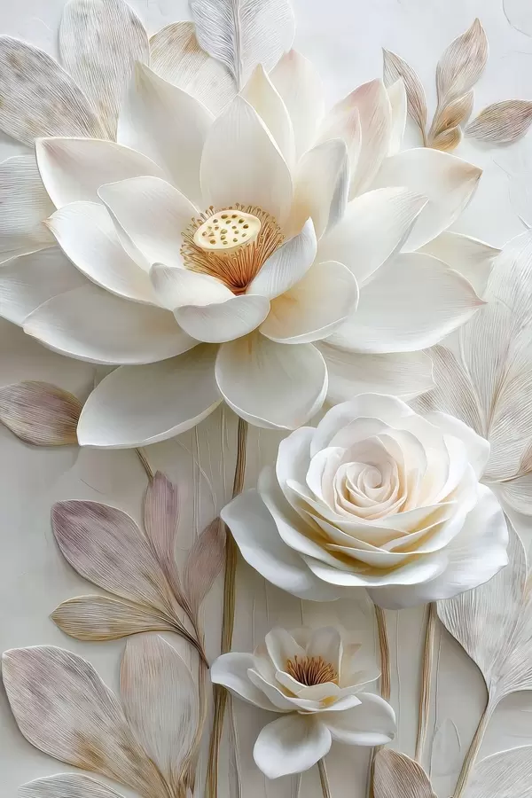 Poster Des fleurs de lotus et de rose dans des tons crème clair, dans un style de peinture à l'huile Nr f48214