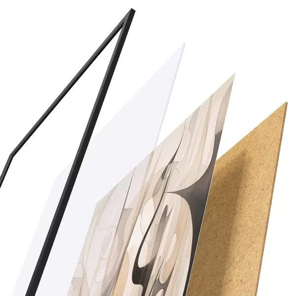 L’affiche encadrée est composée d’un cadre, d’un plexiglas, d’une image imprimée et d’un support en aggloméré. Elle est prête à être accrochée au mur grâce aux fixations situées à l’arrière.