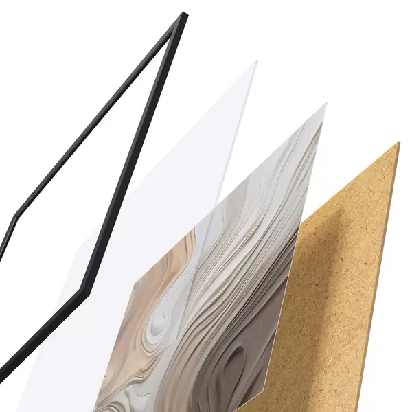 L’affiche encadrée est composée d’un cadre, d’un plexiglas, d’une image imprimée et d’un support en aggloméré. Elle est prête à être accrochée au mur grâce aux fixations situées à l’arrière.