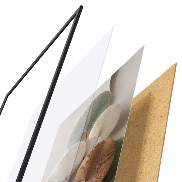 L’affiche encadrée est composée d’un cadre, d’un plexiglas, d’une image imprimée et d’un support en aggloméré. Elle est prête à être accrochée au mur grâce aux fixations situées à l’arrière.