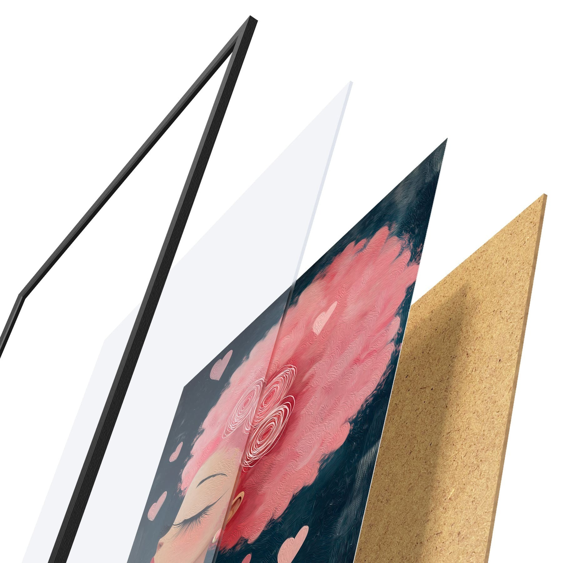 L’affiche encadrée est composée d’un cadre, d’un plexiglas, d’une image imprimée et d’un support en aggloméré. Elle est prête à être accrochée au mur grâce aux fixations situées à l’arrière.