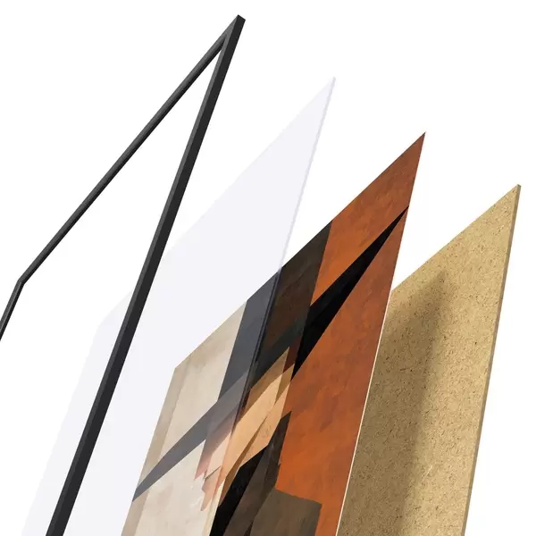 L’affiche encadrée est composée d’un cadre, d’un plexiglas, d’une image imprimée et d’un support en aggloméré. Elle est prête à être accrochée au mur grâce aux fixations situées à l’arrière.
