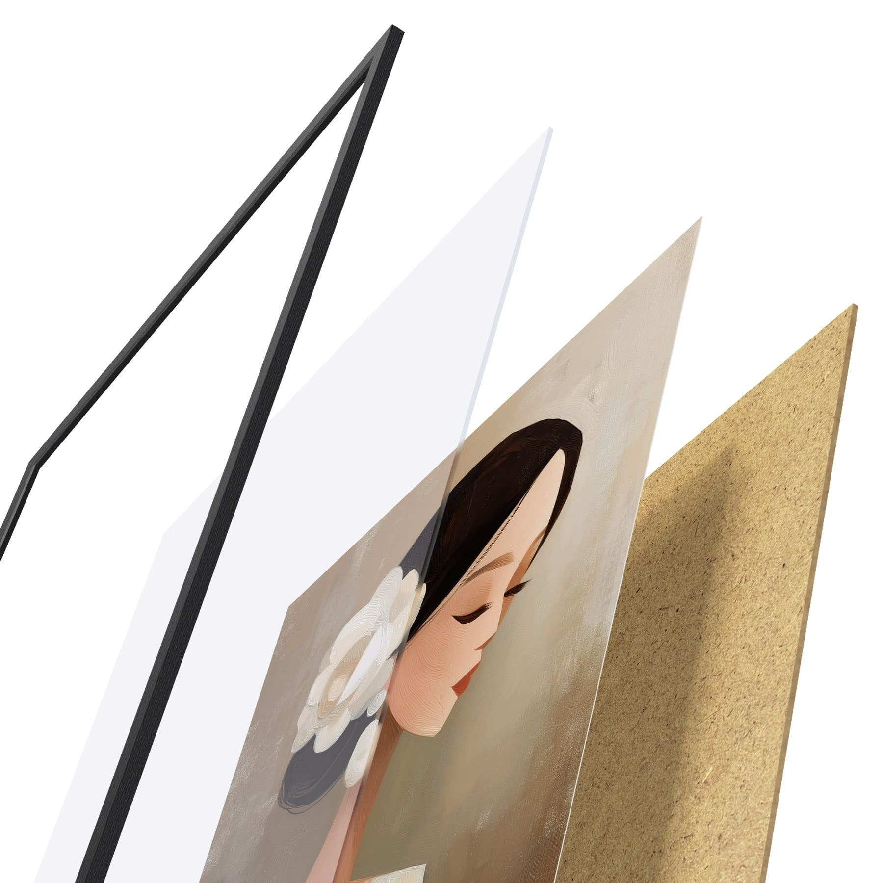 L’affiche encadrée est composée d’un cadre, d’un plexiglas, d’une image imprimée et d’un support en aggloméré. Elle est prête à être accrochée au mur grâce aux fixations situées à l’arrière.