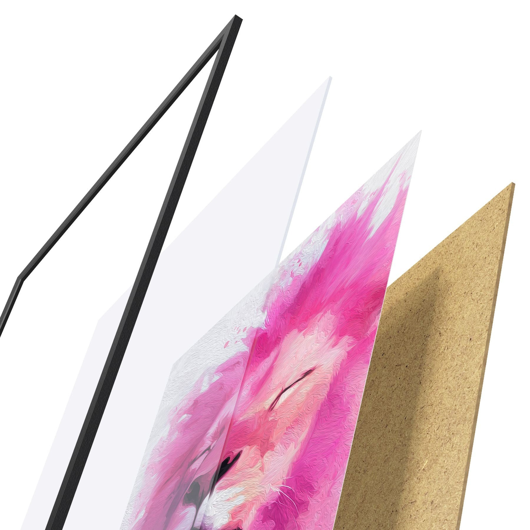 L’affiche encadrée est composée d’un cadre, d’un plexiglas, d’une image imprimée et d’un support en aggloméré. Elle est prête à être accrochée au mur grâce aux fixations situées à l’arrière.