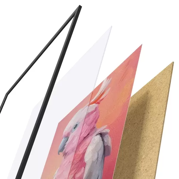 L’affiche encadrée est composée d’un cadre, d’un plexiglas, d’une image imprimée et d’un support en aggloméré. Elle est prête à être accrochée au mur grâce aux fixations situées à l’arrière.