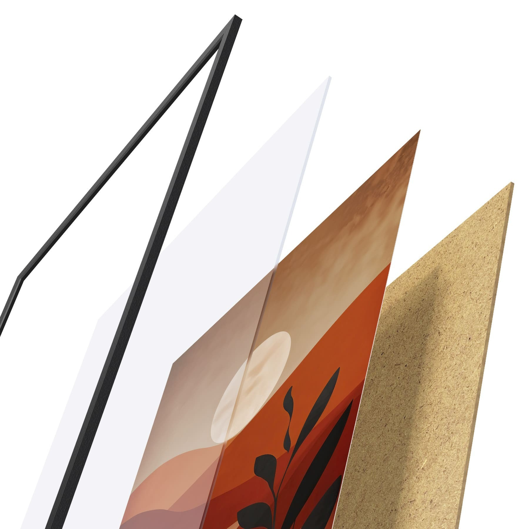 L’affiche encadrée est composée d’un cadre, d’un plexiglas, d’une image imprimée et d’un support en aggloméré. Elle est prête à être accrochée au mur grâce aux fixations situées à l’arrière.