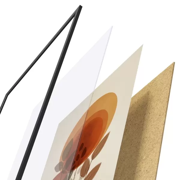 L’affiche encadrée est composée d’un cadre, d’un plexiglas, d’une image imprimée et d’un support en aggloméré. Elle est prête à être accrochée au mur grâce aux fixations situées à l’arrière.
