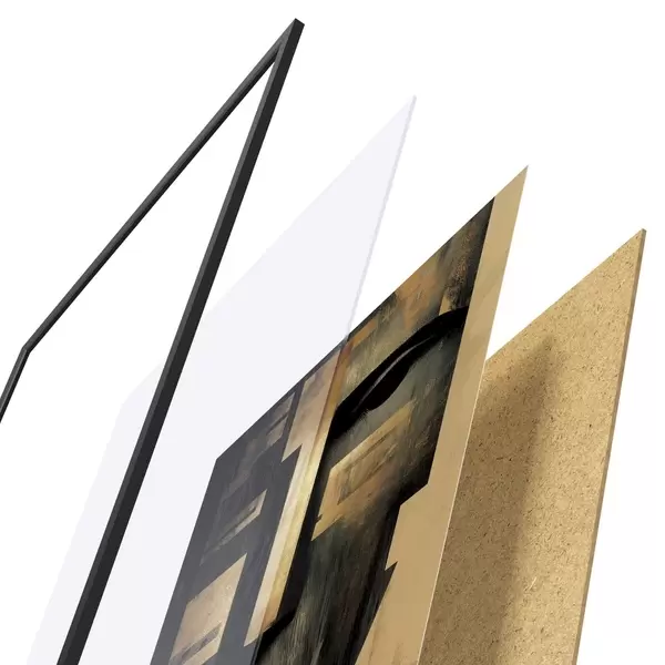 L’affiche encadrée est composée d’un cadre, d’un plexiglas, d’une image imprimée et d’un support en aggloméré. Elle est prête à être accrochée au mur grâce aux fixations situées à l’arrière.