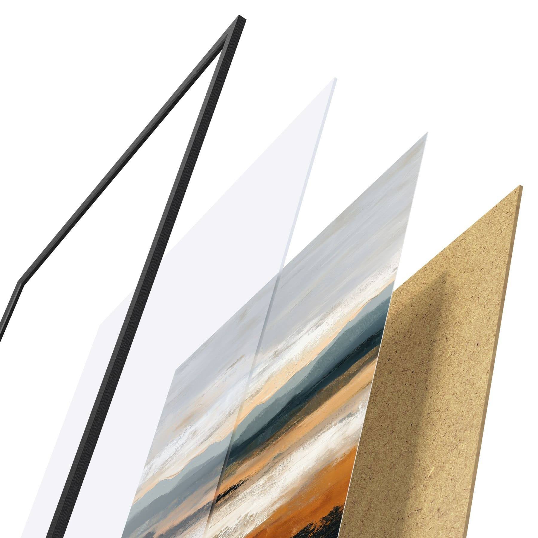 L’affiche encadrée est composée d’un cadre, d’un plexiglas, d’une image imprimée et d’un support en aggloméré. Elle est prête à être accrochée au mur grâce aux fixations situées à l’arrière.
