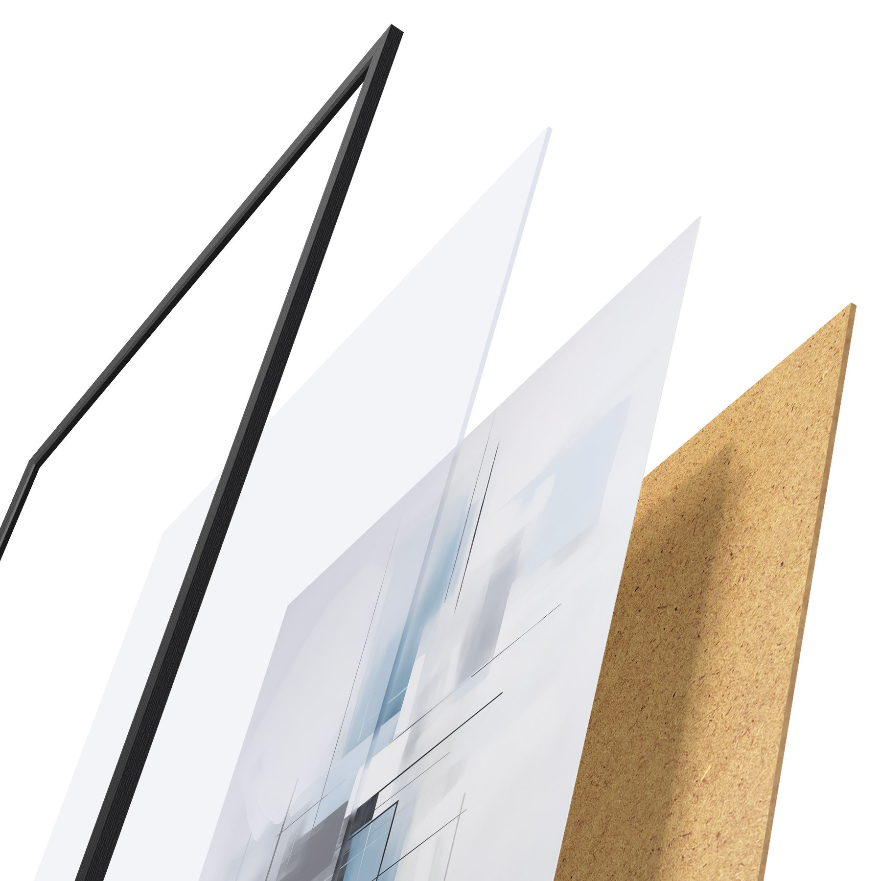 L’affiche encadrée est composée d’un cadre, d’un plexiglas, d’une image imprimée et d’un support en aggloméré. Elle est prête à être accrochée au mur grâce aux fixations situées à l’arrière.