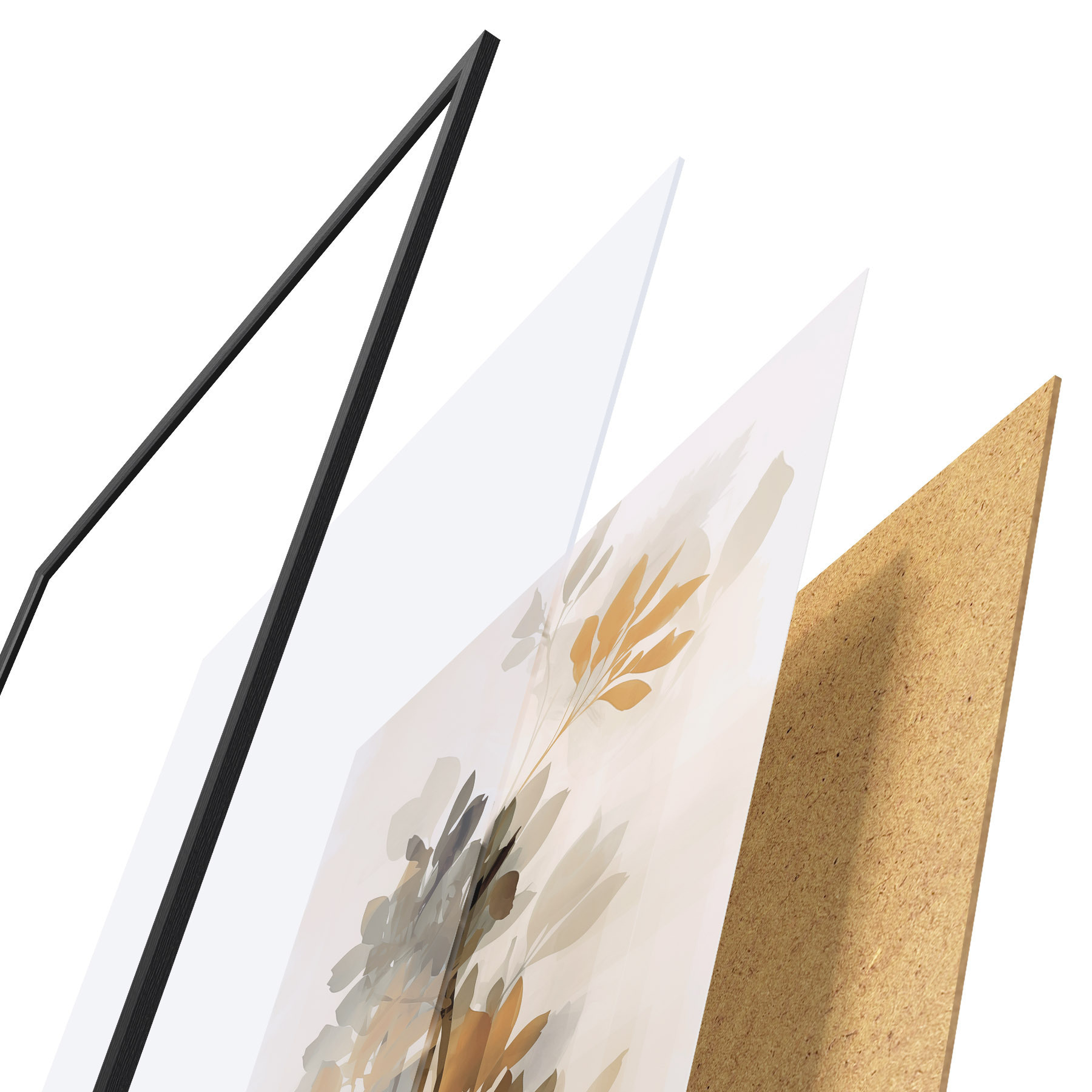 L’affiche encadrée est composée d’un cadre, d’un plexiglas, d’une image imprimée et d’un support en aggloméré. Elle est prête à être accrochée au mur grâce aux fixations situées à l’arrière.