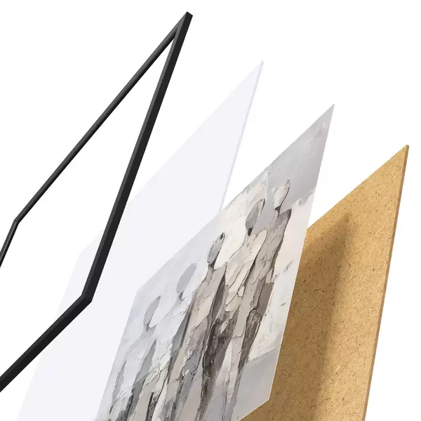 L’affiche encadrée est composée d’un cadre, d’un plexiglas, d’une image imprimée et d’un support en aggloméré. Elle est prête à être accrochée au mur grâce aux fixations situées à l’arrière.