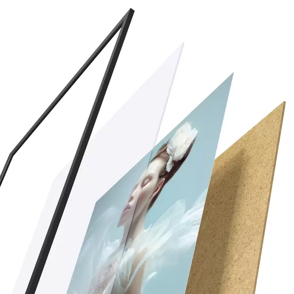 L’affiche encadrée est composée d’un cadre, d’un plexiglas, d’une image imprimée et d’un support en aggloméré. Elle est prête à être accrochée au mur grâce aux fixations situées à l’arrière.