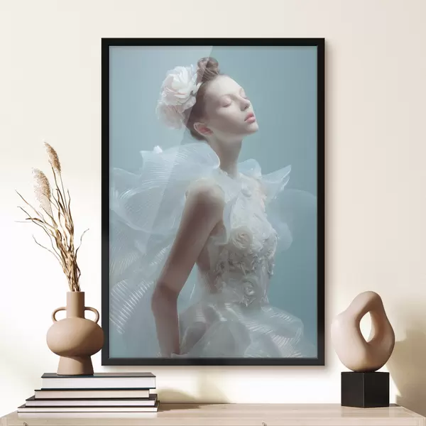 Poster une jeune fille délicate vêtue d'une robe blanche Nr f48288