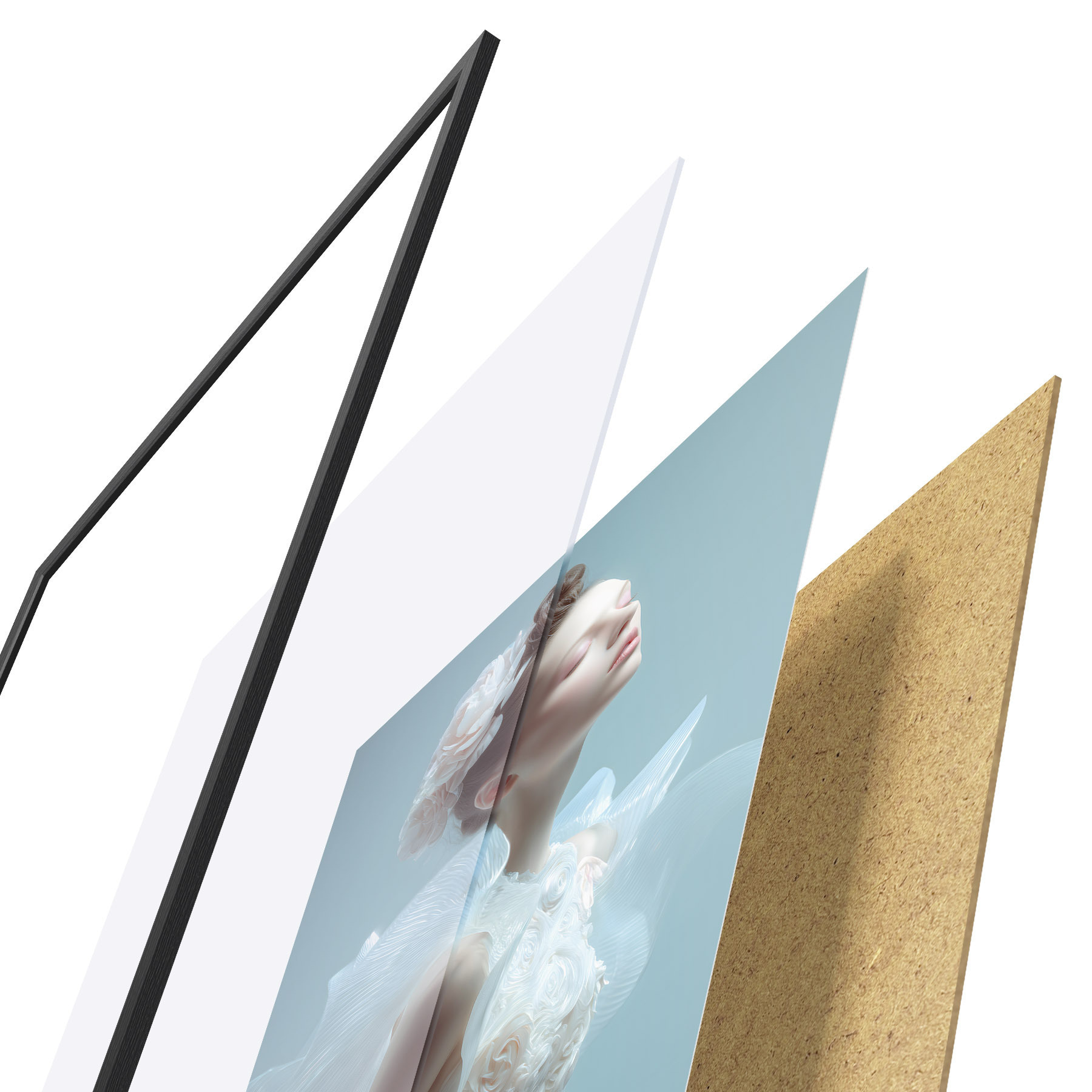 L’affiche encadrée est composée d’un cadre, d’un plexiglas, d’une image imprimée et d’un support en aggloméré. Elle est prête à être accrochée au mur grâce aux fixations situées à l’arrière.