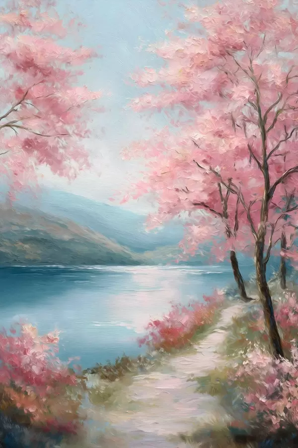 Poster paysage avec des arbres roses dans un style huile Nr f48289