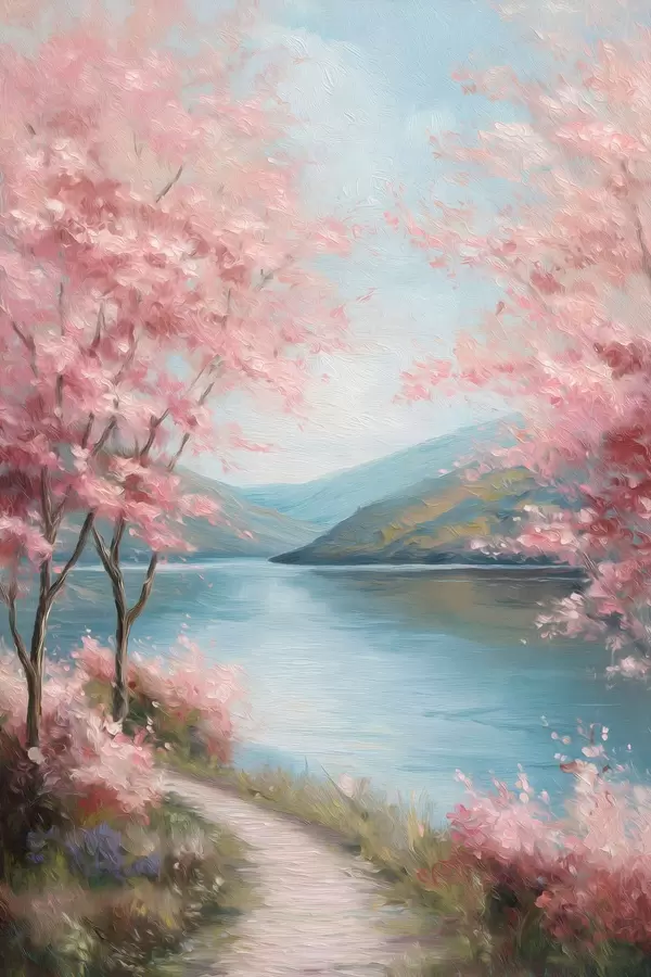 Poster paysage avec des arbres roses dans un style huile f48290