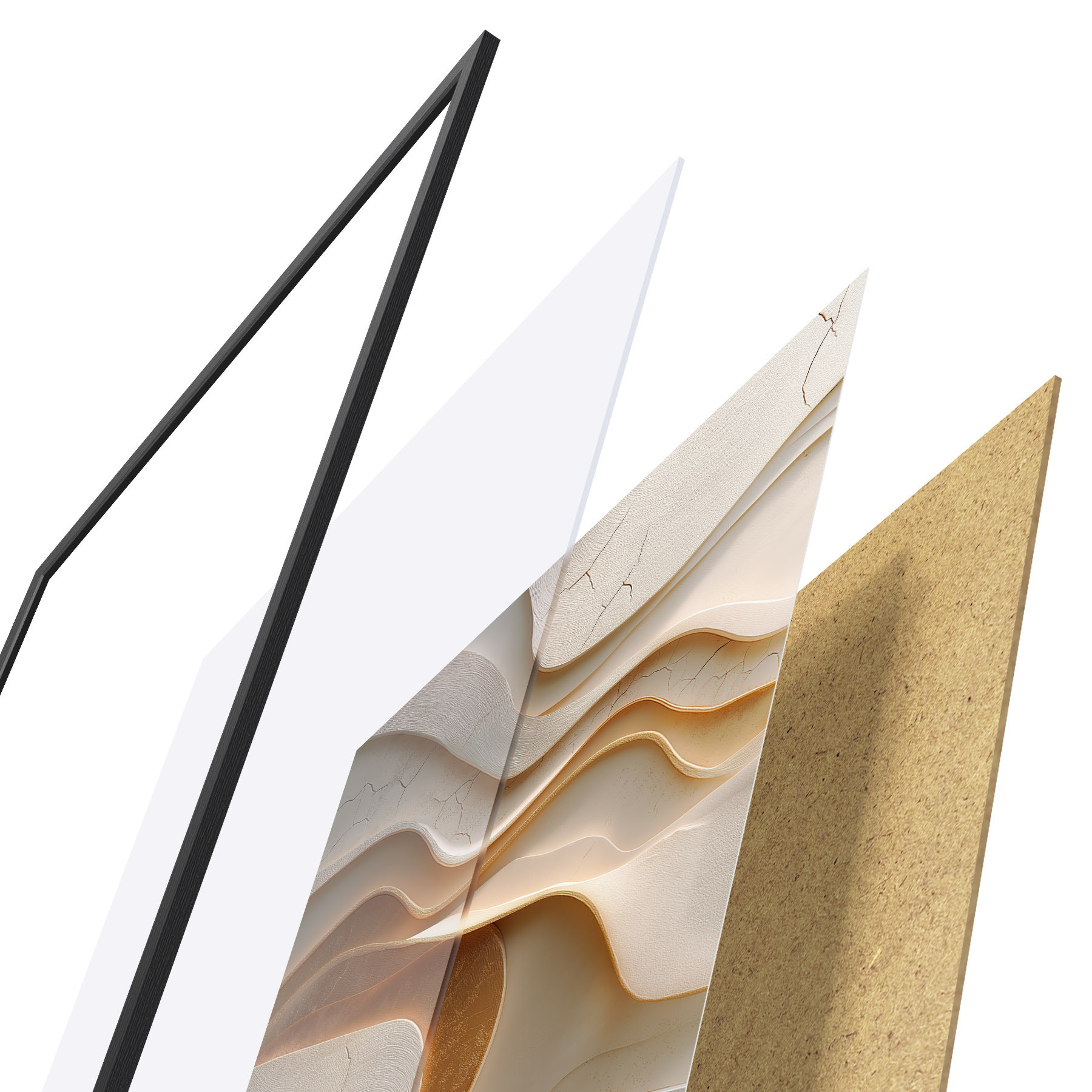 L’affiche encadrée est composée d’un cadre, d’un plexiglas, d’une image imprimée et d’un support en aggloméré. Elle est prête à être accrochée au mur grâce aux fixations situées à l’arrière.