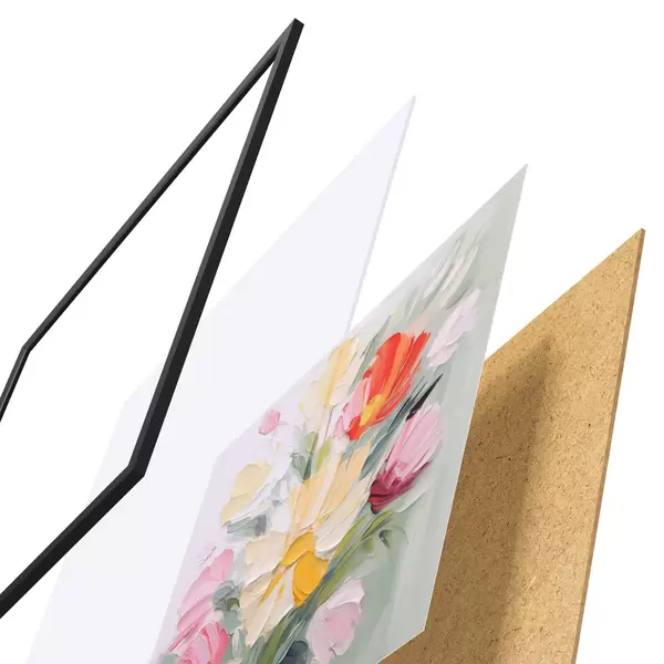 L’affiche encadrée est composée d’un cadre, d’un plexiglas, d’une image imprimée et d’un support en aggloméré. Elle est prête à être accrochée au mur grâce aux fixations situées à l’arrière.