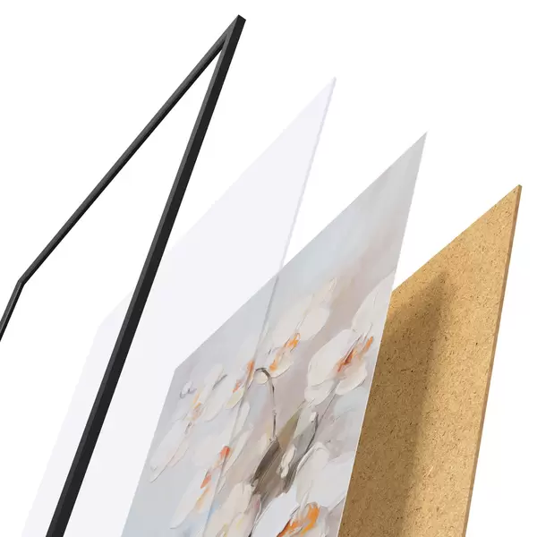 L’affiche encadrée est composée d’un cadre, d’un plexiglas, d’une image imprimée et d’un support en aggloméré. Elle est prête à être accrochée au mur grâce aux fixations situées à l’arrière.