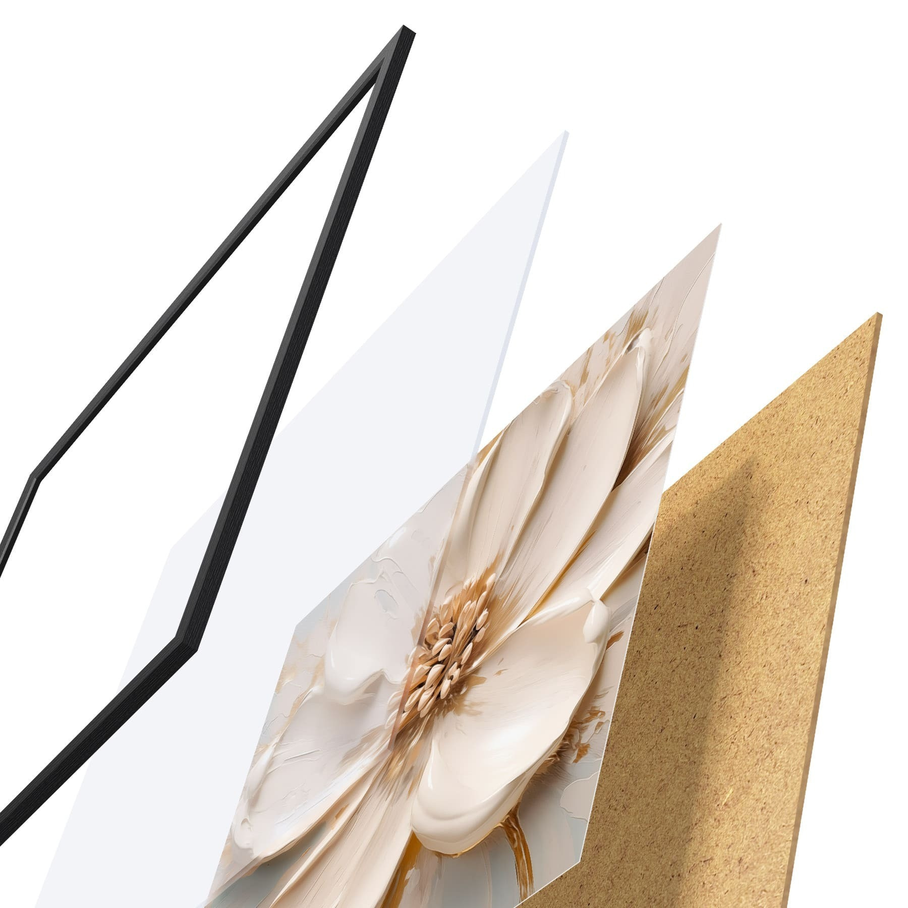 L’affiche encadrée est composée d’un cadre, d’un plexiglas, d’une image imprimée et d’un support en aggloméré. Elle est prête à être accrochée au mur grâce aux fixations situées à l’arrière.