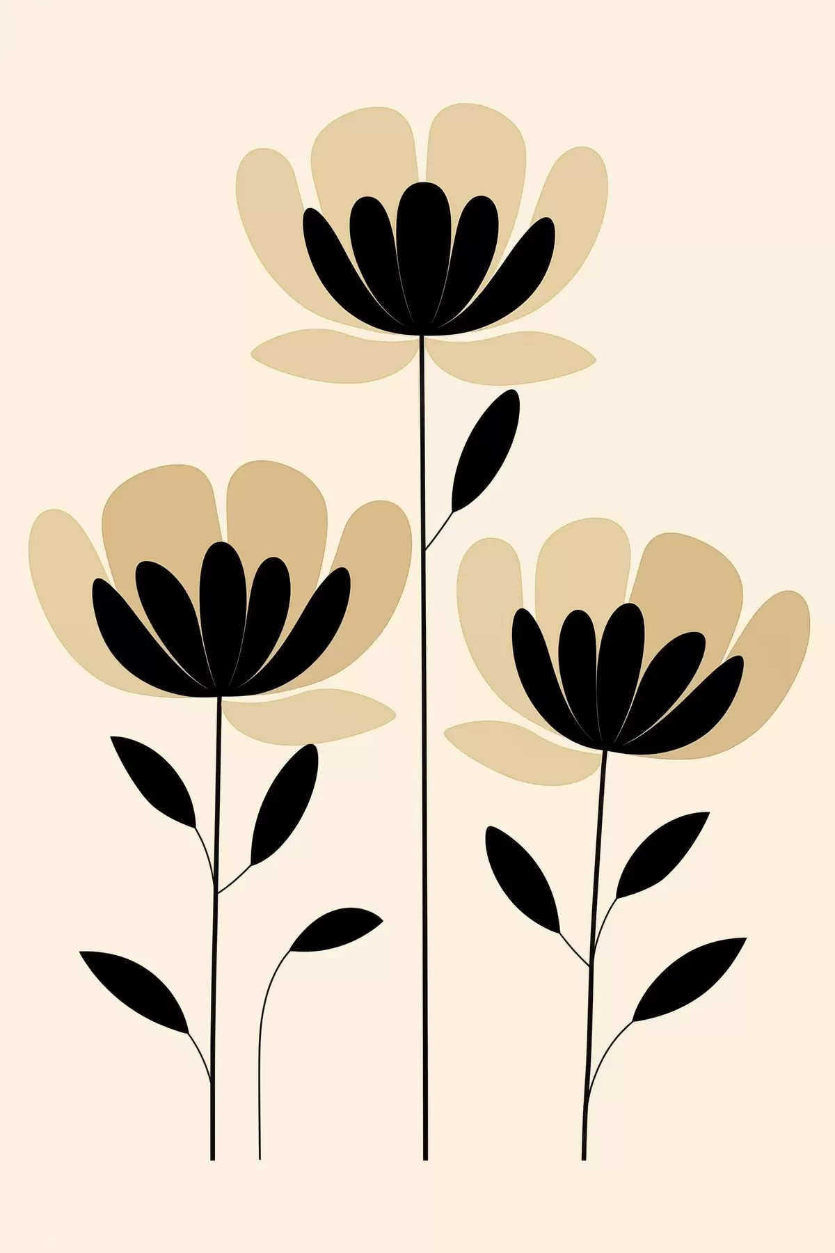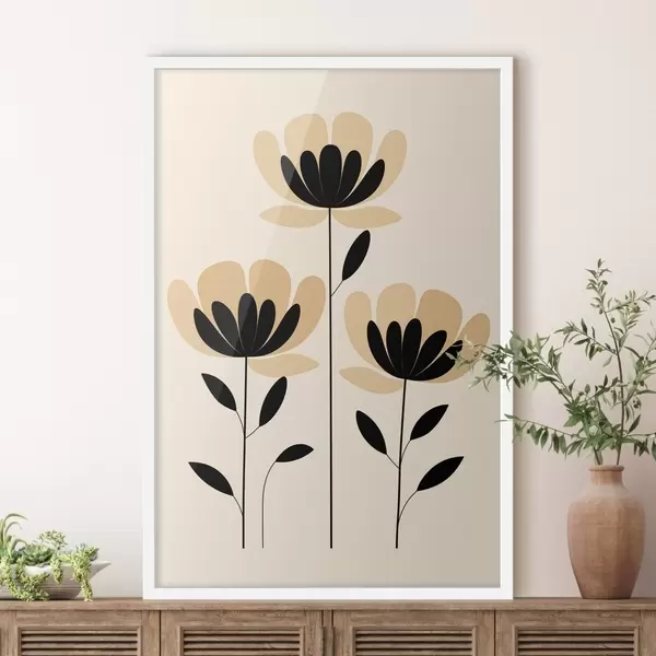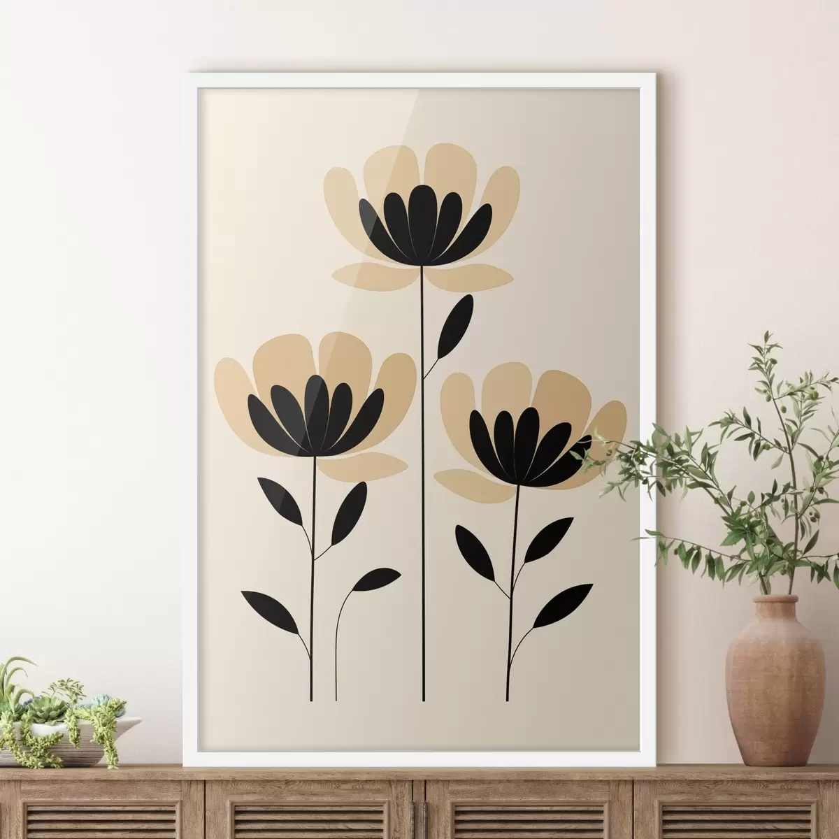 Poster Fleurs minimalistes dans un style noir et beige Nr f48353