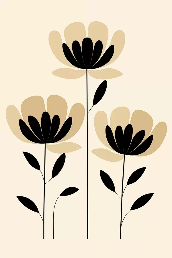 Poster Fleurs minimalistes dans un style noir et beige Nr f48353