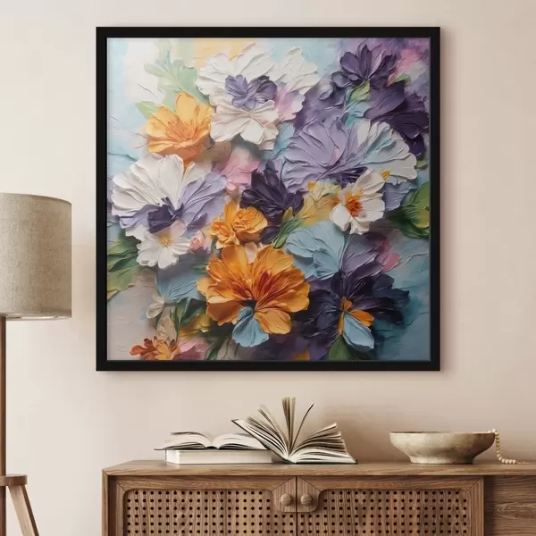 Poster Des fleurs aux couleurs vives et aux textures variées sur un fond pastel Nr f48363